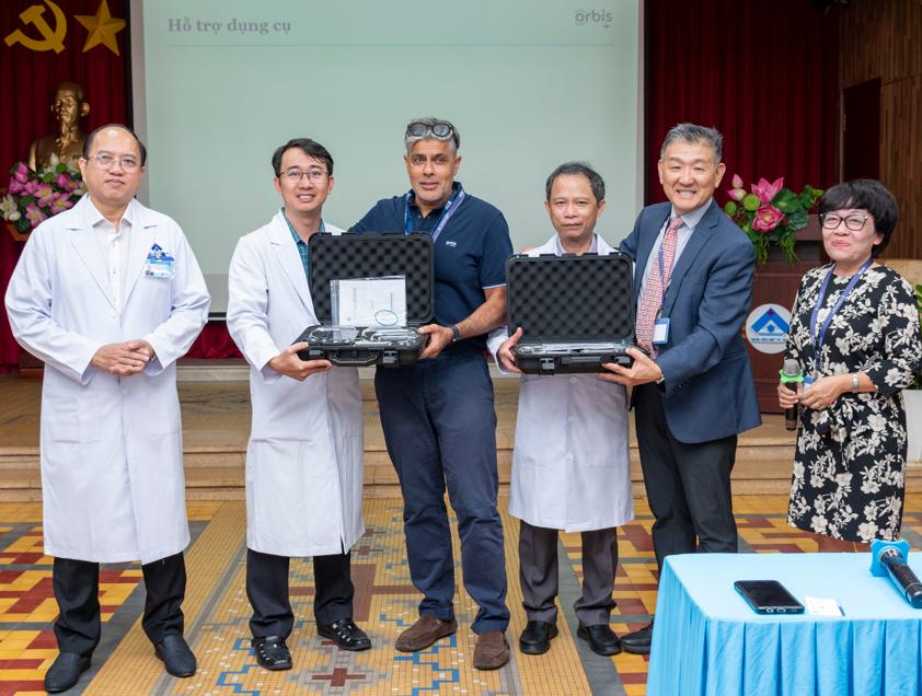 Ảnh 2: Khoa Mắt nhi và Khoa Gây mê hồi sức bệnh viện Mắt tiếp nhận bộ dụng cụ hỗ trợ điều trị lác/lé trẻ em của Tổ chức Orbis