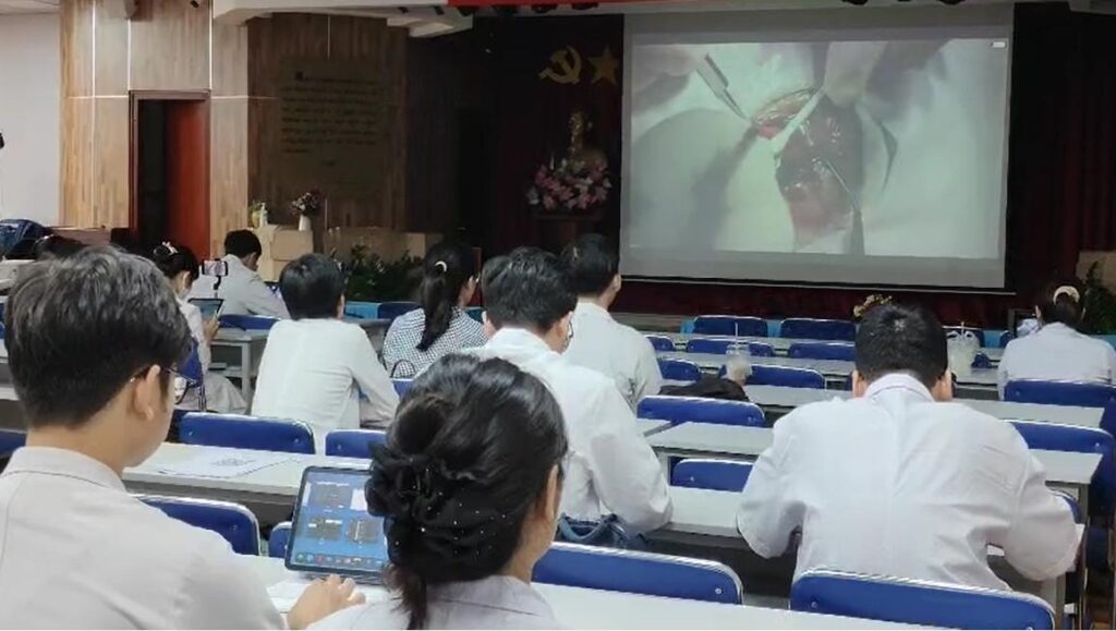Đặc biệt, hoạt động chuyển giao kỹ thuật này trong phòng phẫu thuật được thực hiện truyền hình trực tiếp tại hội trường cho toàn thể bác sĩ chuyên khoa mắt, học viên kiến tập theo dõi, học tập, nâng cao chuyên môn.