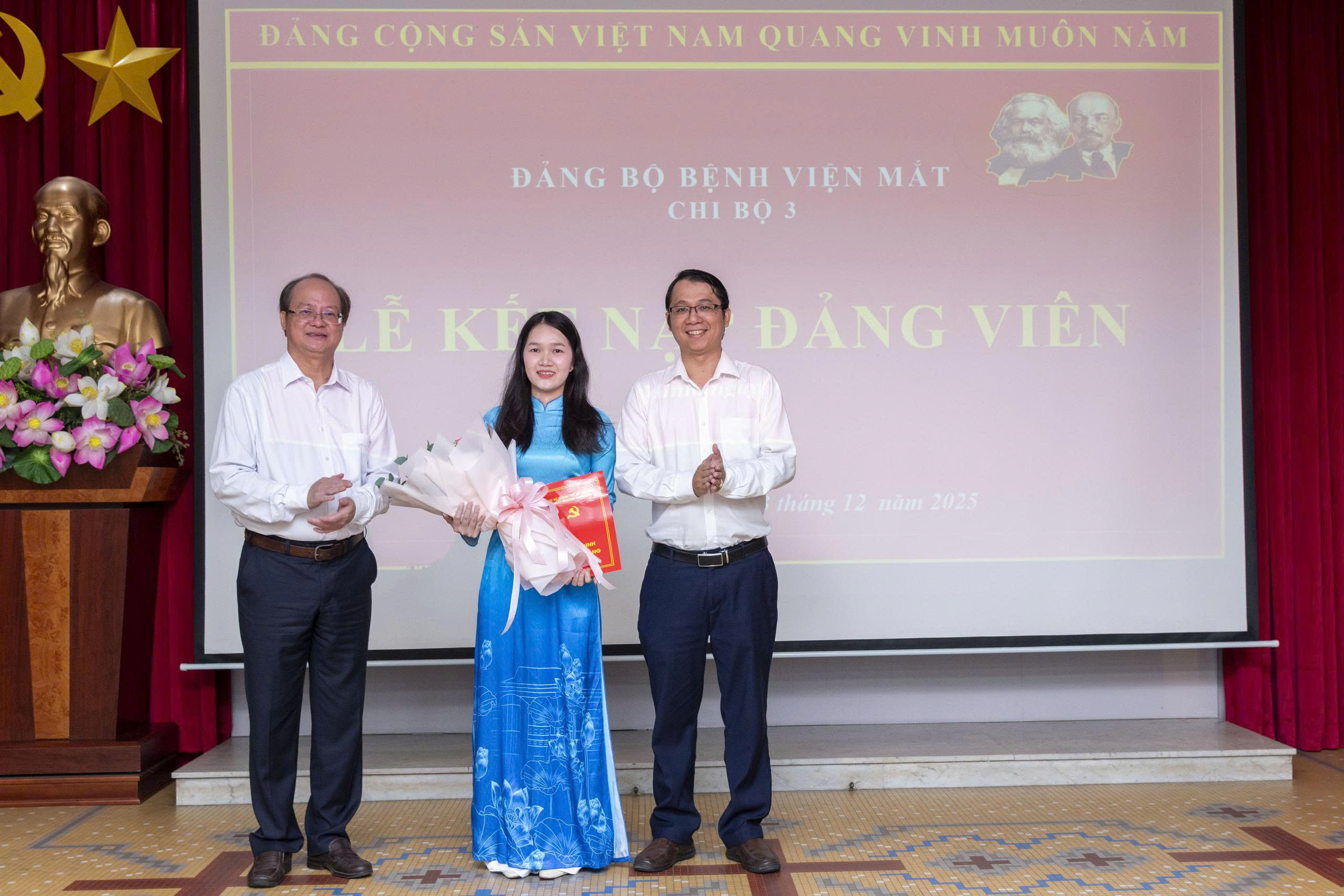 Chiều 03/12/2025 Chi bộ 3 trực thuộc Đảng ủy bệnh viện Mắt đã tổ chức lễ kết nạp Đảng viên mới, tham dự có đồng chí Lê Anh Tuấn, Bí thư Đảng ủy, Giám đốc bệnh viện Mắt; đại diện cấp ủy Chi bộ 4 và Chi bộ 7 cùng toàn thể Đảng viên Chi bộ 3.