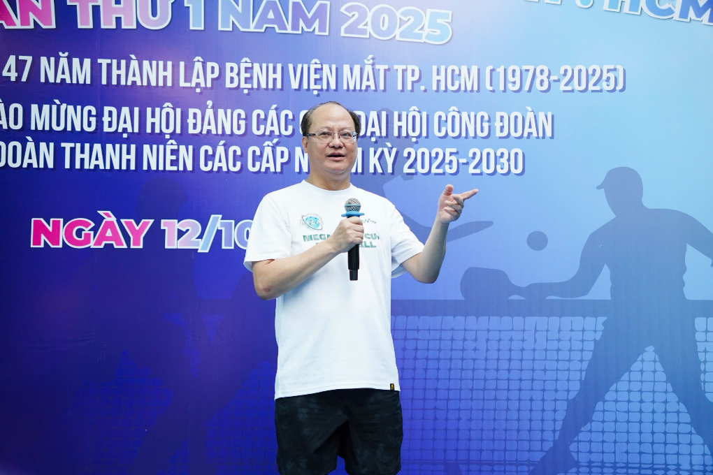 Phát biểu tại lễ khai mạc, BS. CKII Lê Anh Tuấn – Giám đốc Bệnh viện chia sẻ: “Pickleball là môn thể thao mới mẻ, vui và dễ chơi, rất phù hợp với môi trường làm việc của chúng ta – vừa giúp rèn luyện thể lực, vừa giúp thư giãn tinh thần sau những giờ làm việc căng thẳng. Giải đấu hôm nay không chỉ là sân chơi thể thao mà còn là dịp để các anh chị em gắn kết, sẻ chia và cùng lan tỏa tinh thần “Làm hết sức – Chơi hết mình” của Đại gia đình Bệnh viện Mắt TP.HCM.”