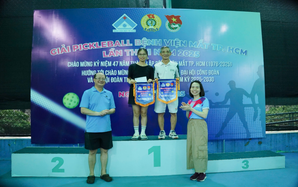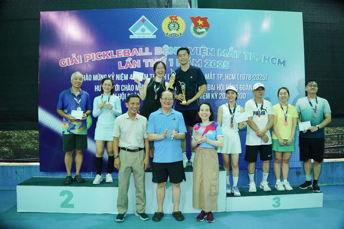 Giải Pickleball Bệnh viện Mắt TP.HCM lần thứ I đã khép lại thành công tốt đẹp, để lại nhiều dấu ấn đẹp trong lòng người tham dự. Hoạt động thể thao này không chỉ giúp nâng cao sức khỏe thể chất, tinh thần cho cán bộ nhân viên mà còn thắt chặt tình đồng nghiệp, khơi dậy nguồn năng lượng tích cực trong toàn bệnh viện.