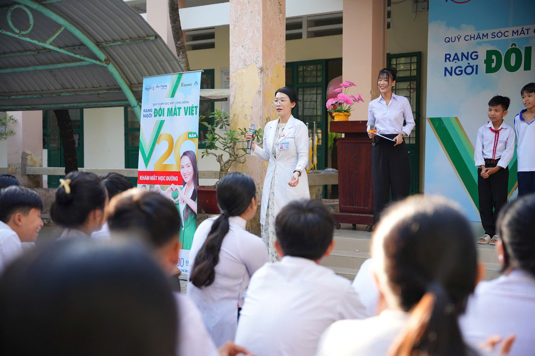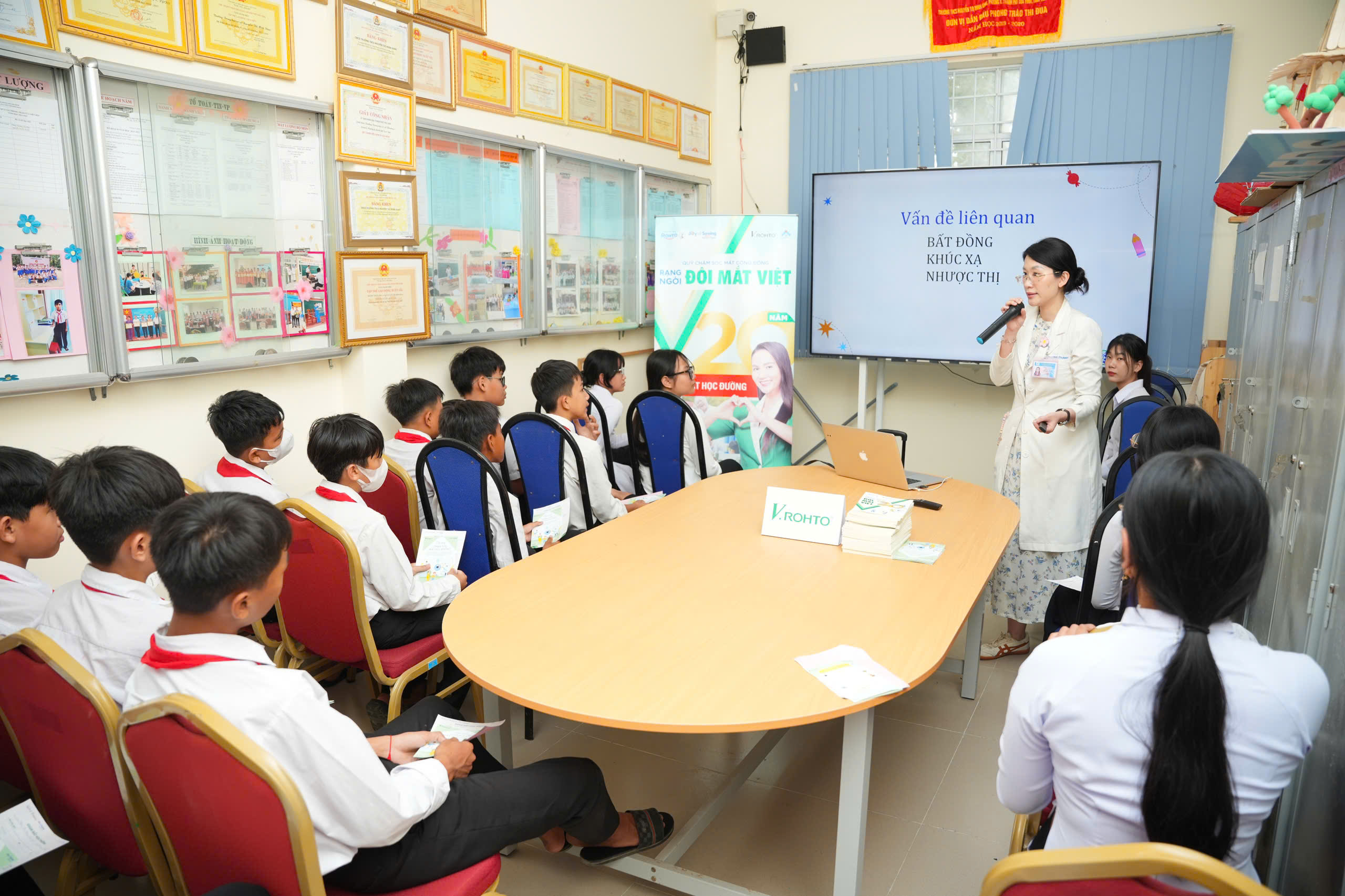 Chương trình khám mắt học đường năm 2025 do Công ty V.Rohto Việt Nam tài trợ được diễn ra từ ngày 21 – 25/4/2025 cho khoảng 4.000 học sinh tiểu học và THCS tại 07 điểm trường: THCS Nguyễn Thị Minh Khai, Tiểu học Nguyễn Trãi, Tiểu học Lương Định Của (thành phố Trà Vinh); Tiểu học Hiệp Hòa A, Tiểu học Hiệp Hòa B, THCS Hiệp Hòa (huyện Cầu Ngang); Tiểu học Ngũ Lạc A (huyện Duyên Hải).