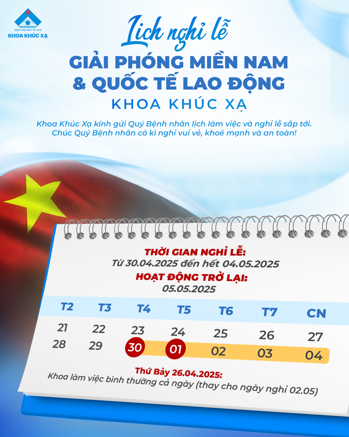 Trang chủ > Các chuyên khoa > Các khoa lâm sàng > Khoa Khúc xạ > KHOA KHÚC XẠ THÔNG BÁO NGHỈ LỄ 30/4 – 1/5/2025